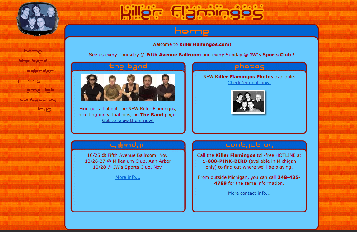 For this project we needed to update and redesign the band Killer Flamingos website. The objectives for this redesign was to have a design that was well organized, lets fans know what the band is up to, create a new visually identity, and make it easier for fans to connect with the band.